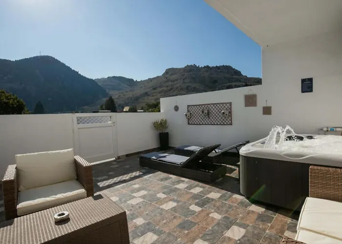 El Stergios Suite With Private Jacuzzi Kolymbia está situado en Kolymbia, a una distancia de 2 km de la Playa Tsambika, y cuenta con un jacuzzi. Uno de los aspectos más destacados de este apartamento de 35 m² es su terraza, desde la cual los huéspedes pueden contemplar las vistas a las montañas.